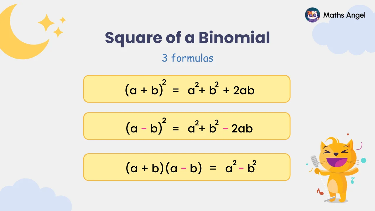 Learn how to use binomial formulas like (a + b)², (a − b)², and (a + b)(a − b) to simplify expressions. Let’s get started! 🚀